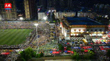 自5月13日以来,每逢周五、周六、周日,每天都有三到四场足球比赛进行,从傍晚持续到午夜,上至九旬老妪,下至学龄前儿童,一起敲锣打鼓为球员鼓劲,都能让你感受滚烫的爱。