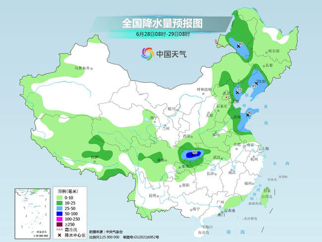 具体来看,中央气象台预计,今天,甘肃东南部、陕西、四川盆地、内蒙古中部和东北部、山西西部、黑龙江西部和东南部、吉林东北部、广东东南部等地部分地区有中到大雨,其中,山西西部、陕西西南部、四川盆地北部等地部分地区有暴雨或大暴雨(100~110毫米)。