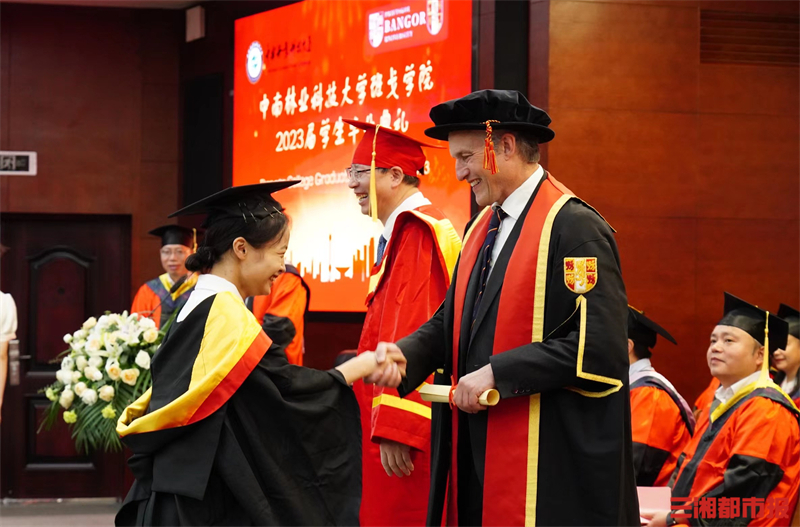 据悉,这是三年来,中英两校领导再次同台为获得中英两校学位的同学颁发证书。作为湖南省首家中外合作办学机构,自2014年招生以来,班戈学院始终坚持以生为本、多措并举,成为了实现高质量就业的“硬核学院”,过去五年,毕业生就业率和就业质量均保持在90%以上。2023届毕业生国内考研成功率更是较去年提升近40%。为了提升学生就业竞争力和个人可持续发展能力,学院不断夯实就业基础,在党建引领下,坚持社会主义办学方向,聚焦立德树人根本任务,积极引进国外优质教育教学资源,不断提升人才培养质量。善于抓住就业重点,放宽国际视野,积极推行开放办学,为学生创造拓展国际视野、提升跨文化沟通与合作能力的环境。积极攻克就业难点,为了应对疫情和慢就业倾向带来的影响,学院进行了广泛摸底,建立了信息台账,通过制定发展规划、调适就业心理、唤醒职业期望等个性化措施来攻克慢就业心理。