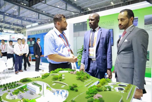 展会现场,中建二局围绕海外工程、基础设施建设、绿色能源设施建设和科技创新智慧建造四个板块,充分展示重点项目、技术应用以及企业文化。