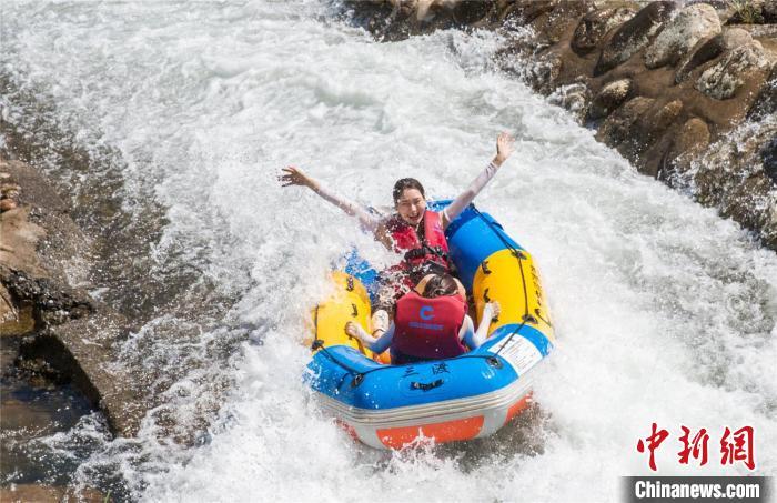 中新网杭州7月2日电(谢盼盼 程明芳)碧水潺潺,在龙井峡乘着橡皮艇顺流而下,穿梭在蜿蜒流动的河中,四面青山环绕,漂流其间,迎面而来的凉风与水珠冲刷掉了夏日的酷热……浙江省杭州市临安区历来以山水取胜,临安区龙岗镇内的浙西大龙湾景区瀑布群落、奇峰怪石、深峡幽谷,旅游资源得天独厚。