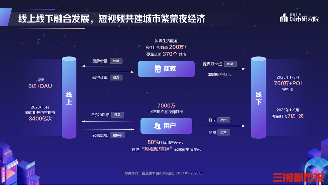 从线上到线下,短视频在协助城市打造夜经济名片,激活城市夜间消费潜力和辅助商家经营等方面发挥的重要作用。