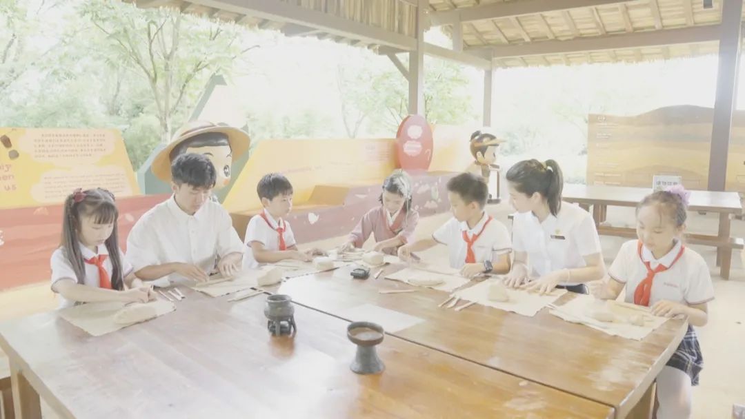 在良渚古城博物院,同学们了解到良渚人的衣食住行、打猎、织布,参观五千年前的水坝和宫殿,欣赏精美的玉器和陶器。“良良”带领同学们,体验手工制作陶器的乐趣,亲手在陶器上画上花纹。