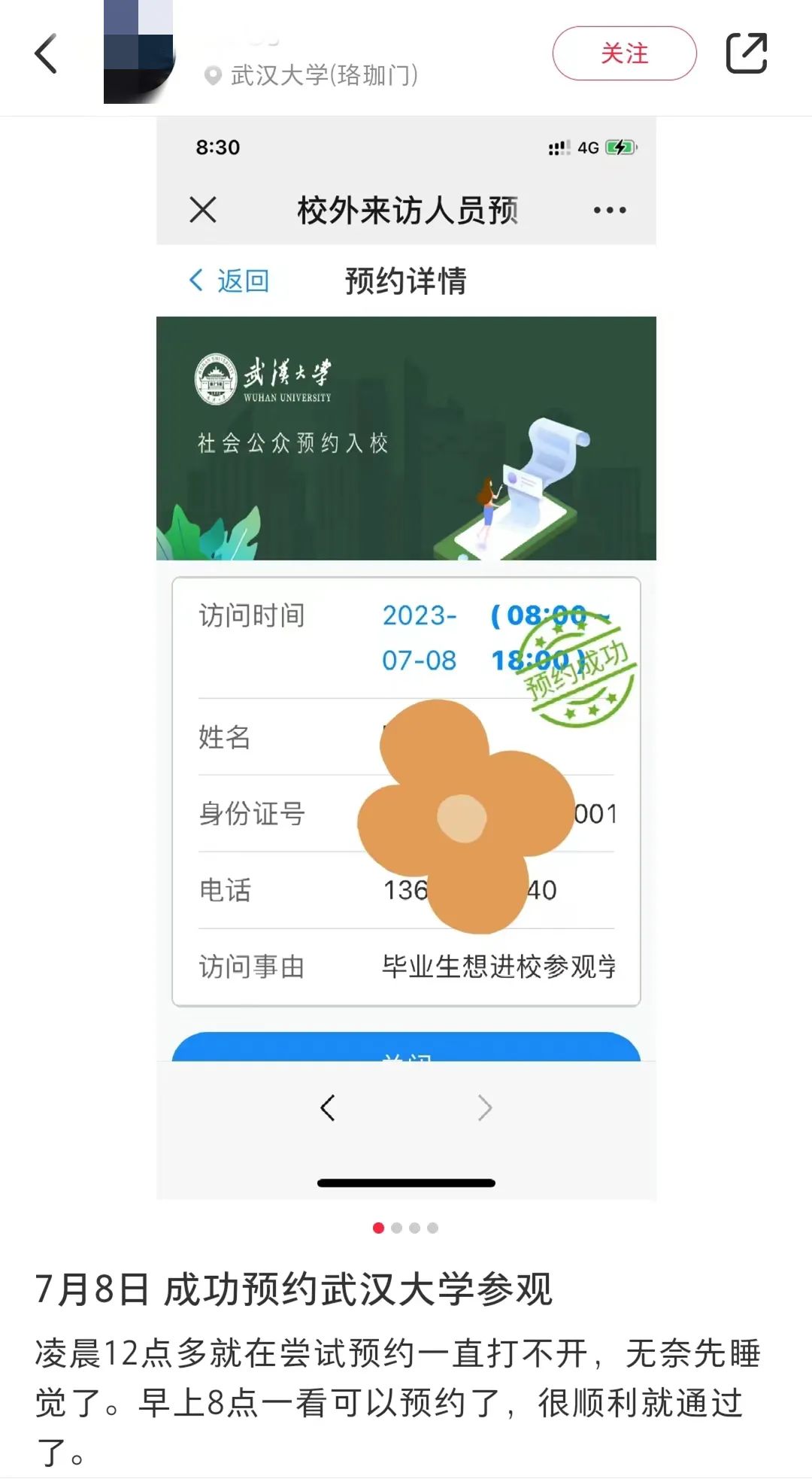 今天(7月8日)两所高校线上预约通道正式开启,凌晨开始就有网友在线预约武汉大学今天的参观名额。