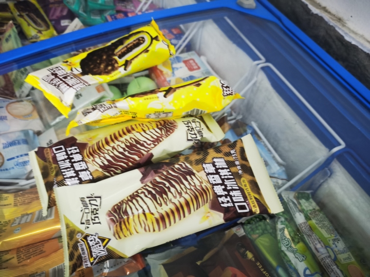“看来还是老底子卖得好啊。”“那不一定,网红今年也有卖得好的。”老板指了指门口摆的一款雪糕,“哝,就是德华新出的磨巧。”