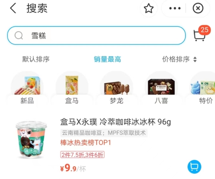 记者也搜索了盒马上的销售数据,据盒马数据,棒冰热卖TOP1的正是价格9块9的盒马X永璞冷萃咖啡冰冰杯。