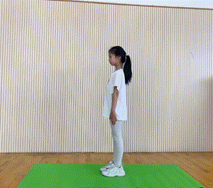 动作要点:手稳扶椅子把手(或桌子),保持抬头挺胸,身体缓缓下压,直到肩膀、背部有明显的拉伸感觉即可。持续10~20秒后缓慢起身,调整呼吸10秒,再做下一次,练习3~5次。