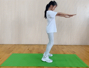 动作要点:挺胸收腹,保持身体平衡,左脚后跟尽量贴近臀部,膝盖垂直向下,感受股四头肌(大腿前侧)有一定的拉伸感。持续10~20秒,左右交替练习各3~5次。