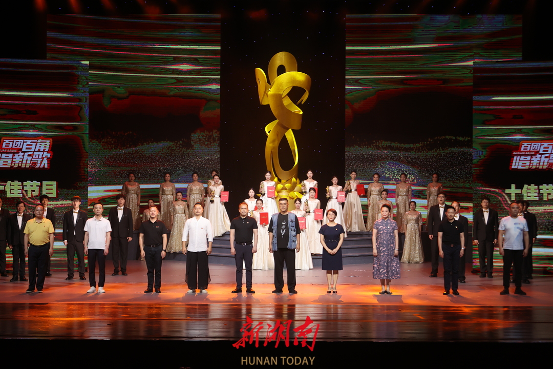 湖南日报·新湖南客户端7月9日讯(记者 龙文泱 摄影记者 赵持)随着奋发向上的主题曲《做最美的光》响起,今晚,“百团百角唱新歌”湖南省文艺院团竞演颁奖典礼在湖南大剧院举行。省委常委、省委宣传部部长杨浩东为“十佳节目”颁奖。