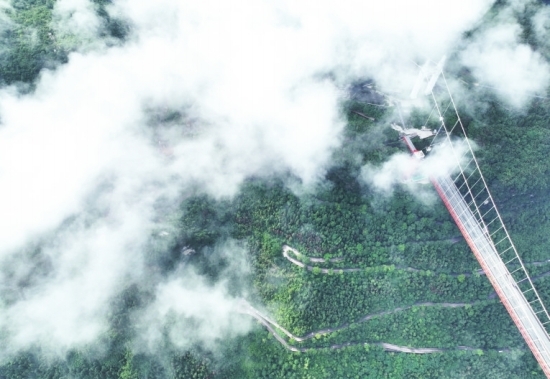 矮寨大桥附近,是湖南人避暑游玩之地。图/新华社