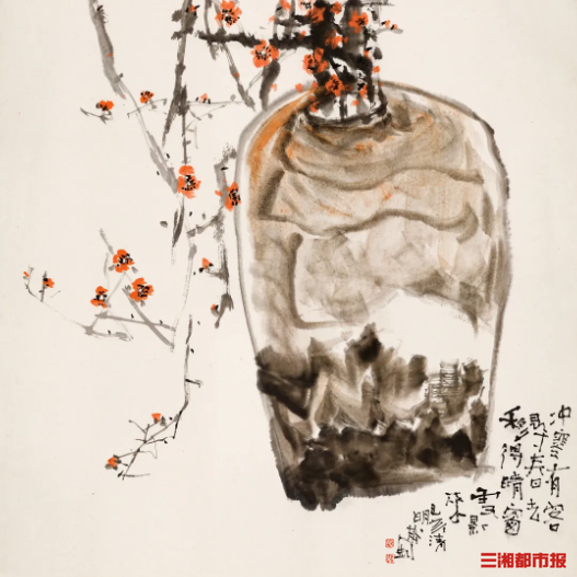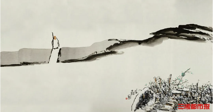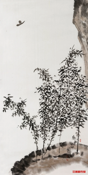老爷子今年八十有二,这个月十二号,要在我们湘地的齐白石纪念馆举办个展。展名多义,曰《我自南来》。齐白石纪念馆门槛不低,每年仅在全国邀请一位艺术家举办学术性个展。郭莽园先生是今年的受邀者。老爷子自己也看得比较重。跟他走得很近的几位艺术家朋友就帮他策展布展同挑画,其中有几位便是在粤地的湘人,如陈炳佳,如彭文斌。他们从老爷子数百幅作品中挑选了150幅书画精品参展。遗憾的是,这幅作品在挑选之外。刘晨激动地走来走去,大声道:“要是我,我一眼就会挑中它!”我对刘晨的眼力是信任的。我也觉得它应当入展。我看了看老爷子,他慢慢啜着单枞,吐着烟,笑意盈盈,并不发表看法。炳佳亦是笑笑的,举杯啜茶。这位热心的仁兄,为老爷子的画展,不分昼夜地操心尽力。我后来才晓得,他们已挑了许多大画,为了题材多样同内容节奏,亦要挑一些中画幅的画作同小品,老爷子创作丰盈,精品太多,难免在挑选中将一些同题材好画割爱。这种遗珠之憾也是没有办法的事。