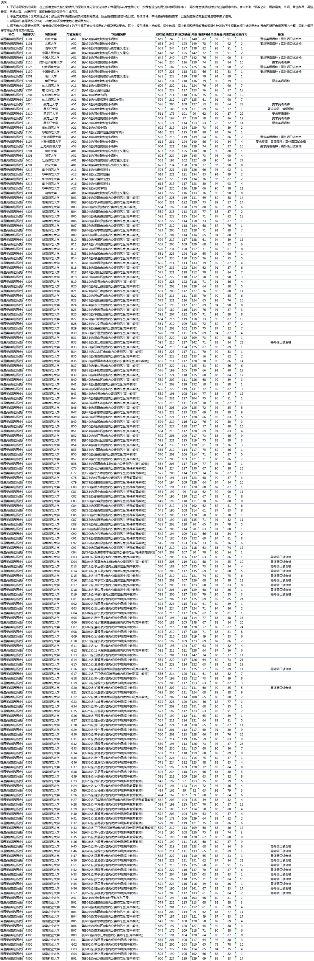 平行志愿投档的规则:在上线考生中先按分数优先的原则从高分到低分排序(当遇到多名考生同分时,按我省规定的同分排序规则排序),再按考生填报的院校专业组顺序出档。表中所列“语数之和、语数最高、外语、首选科目、再选最高、再选次高、志愿序号”是投档最低分同分考生排序项。