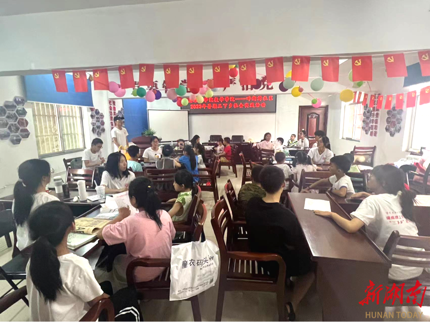 湖南日报·新湖南客户端7月11日讯(通讯员 邹宛霖 赵馨 徐顺子 吴懿)“风在吼,马在叫,黄河在咆哮,黄河在咆哮……”为纪念七七事变86周年,缅怀革命先烈,7月7日至8日,湖南理工学院——“数”起心中的信仰彩虹志愿服务团队前往南湖新区南湖街道畔湖湾社区开展三下乡社会实践活动。志愿者的领唱声激昂铿锵,孩子们嗓音稚嫩,眼神却透露出热切与坚毅。