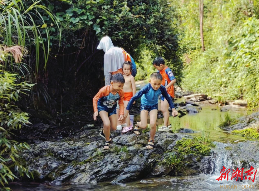 新湖南客户端7月11日讯(通讯员 王姝 蔡容 张喆)“快看,这里有小鱼!”灿烂的阳光照耀在蜿蜒而下的小溪上,伴着孩子们清脆的笑声。7月11日,湘西土家族苗族自治州吉首市乾州街道大庭村新一季亲子游研学活动正在火热开展。