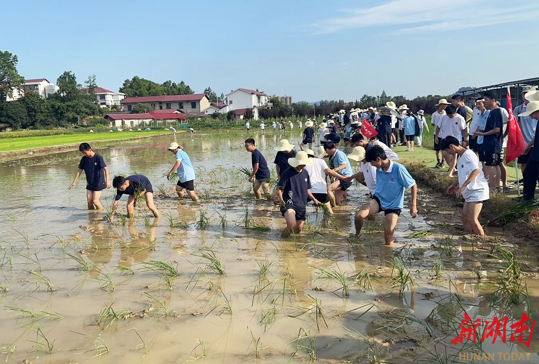 7月11日,浏阳市梅田湖,长沙市周南中学K2211班的学生在体验插秧。7月9日至11日,该校利用暑假,组织2022年级的学生到浏阳市梅田湖游学基地,参加水田插秧、红薯发电、浑水摸鱼、趣味农运会等体验活动,并开展周南少年厨神挑战赛。让孩子们通过参与农事农作,学习农耕文化,养成良好的劳动习惯和品质,亲眼见识集体经济发展的“浏阳样板”,感受乡村振兴战略的亮丽画卷。李珍慧 童建华 摄影报道