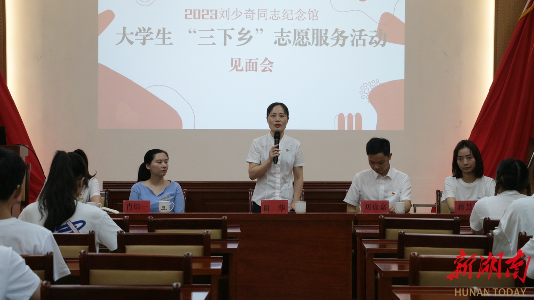 队员们在与中南林业科技大学、西南大学志愿服务队汇合后,在园区会议室参加了本次“三下乡”活动见面会。会上,刘少奇故里管理局村宣传教育部部长谢华和副部长肖煊一、刘徐嘉,以及带队老师蒋慧佳一同出席,对此次活动规划进行介绍,同时对志愿者们传承刘少奇红色精神寄予厚望。