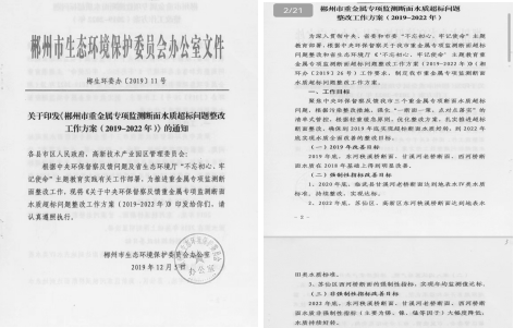 △《郴州市重金属专项监测断面水质超标问题整改工作方案(2019-2022年)》