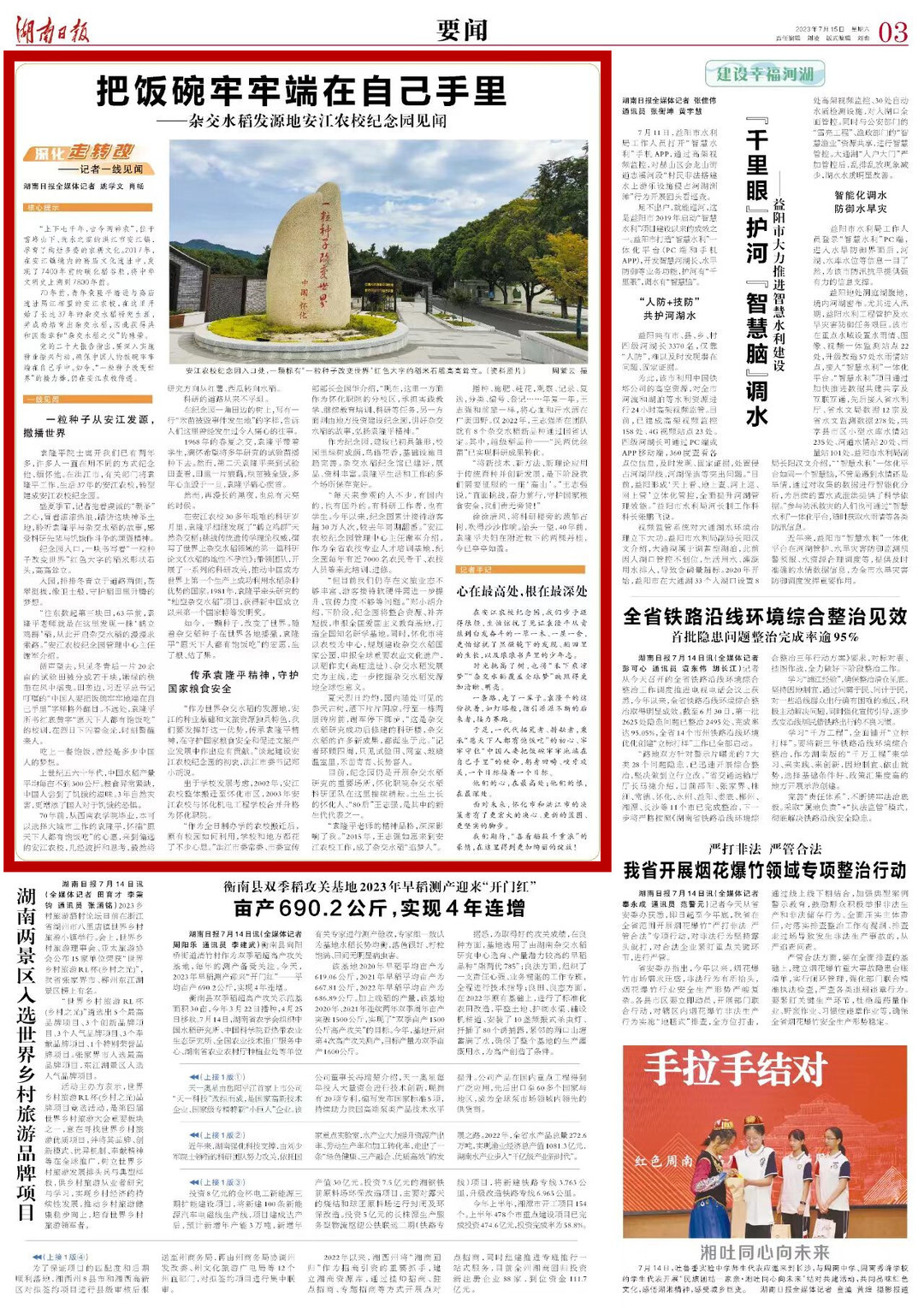党的二十大报告指出,要深入实施种业振兴行动,确保中国人的饭碗牢牢端在自己手中。如今,“一粒种子改变世界”的接力棒,仍在安江农校传递。