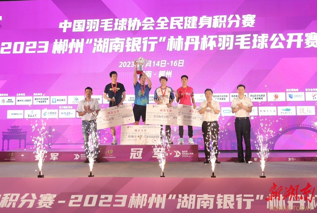 湖南日报7月16日讯(李秉钧 何庆辉)盛夏7月,激情似火。7月16日下午,经3天的激烈角逐,2023 郴州“湖南银行”林丹杯羽毛球公开赛,在郴州体育中心落下帷幕,原国家羽毛球一队运动员周泽奇捧回了重达8公斤的纯银“林丹杯”,杯上留下了他的名字。羽毛球世界冠军林丹、鲍春来出席了闭幕式。本次赛事有关参赛选手的成绩,将纳入中羽协相关赛事积分。