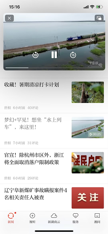 当你浏览新闻看视频的时候,开启小窗播放后,即可边看视频边浏览其他的新闻噢。