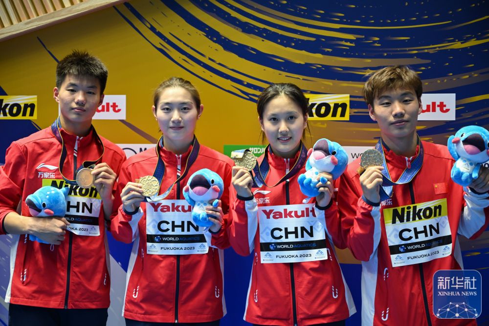 7月18日,在日本福冈举行的2023年世界游泳锦标赛跳水混合团体决赛中,中国队以489.65分夺冠。