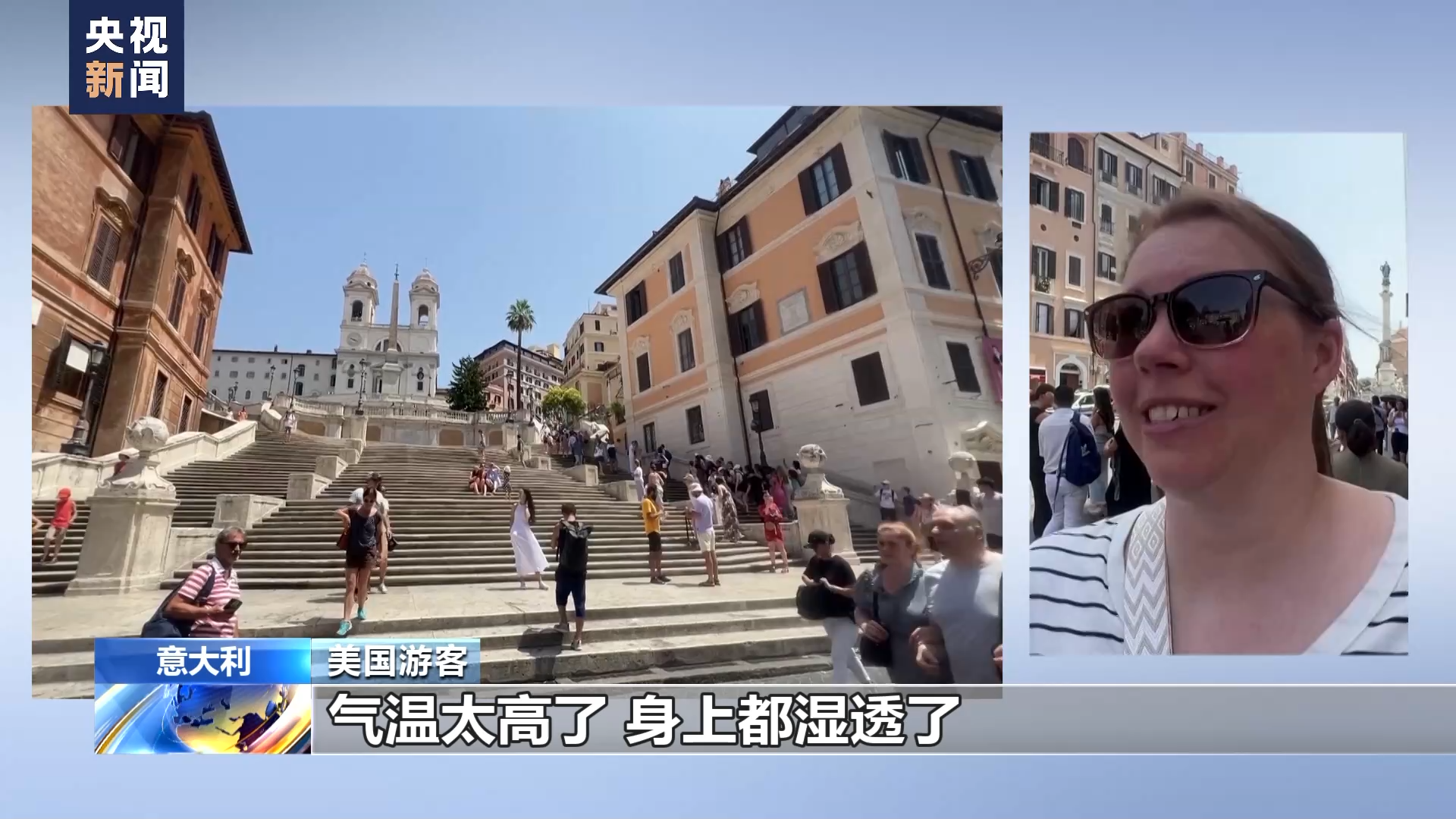 美国游客:气温太高了,身上都湿透了。情况不太好,我打算回酒店了,不能在外面溜达了。