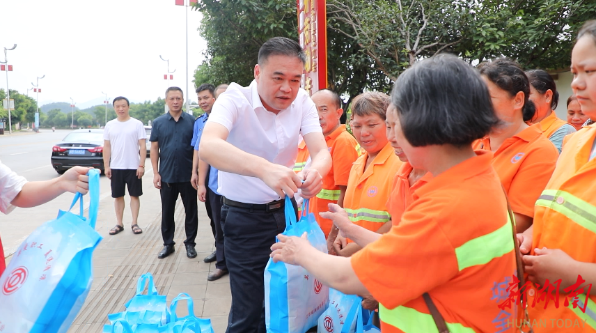 湖南日报·新湖南客户端7月20日讯(通讯员 蓝玉春)7月20日,江华瑶族自治县县委副书记、县长吴军臣看望慰问高温下坚守岗位的一线工作者,为他们送去防暑降温物品,并通过他们向广大劳动者致以诚挚的问候和衷心的感谢。