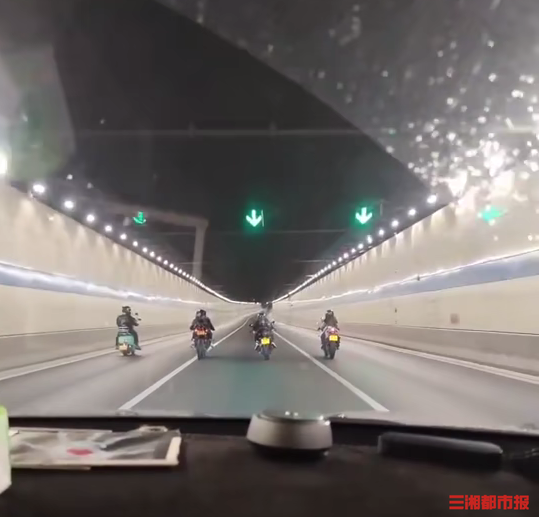 三湘都市报·新湖南客户端7月20日讯(文/视频 全媒体记者 虢灿 实习生 陆婷)凌晨的隧道里,4台摩托车并行,把正常行驶的小车挡在身后,无视小车司机闪灯提醒,继续拍摄视频。这是7月19日凌晨发生在长沙湘府路隧道的一幕,有网友在网络上传了视频,引起了长沙交警的注意。当晚,5名骑乘人员都被口头传唤到了交警部门。