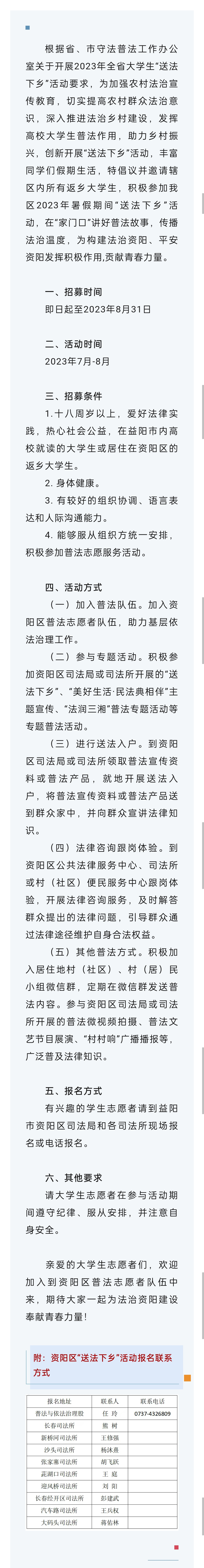 招募令|益阳市资阳区:普法筑梦 你我同行