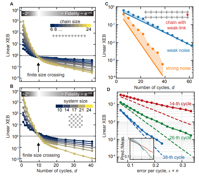 “随机电路采样”中的相变问题的运算结果。图片来源:参考文献 [3]