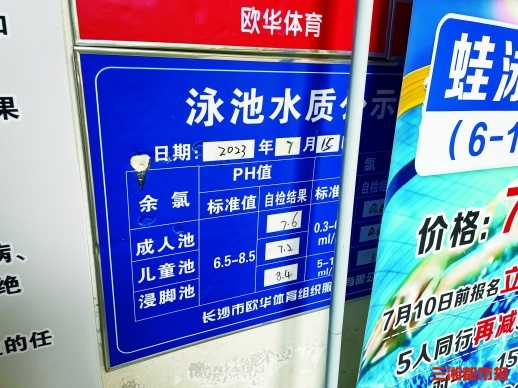 (7月18日,兵华游泳池,水质公示牌未及时更新。)