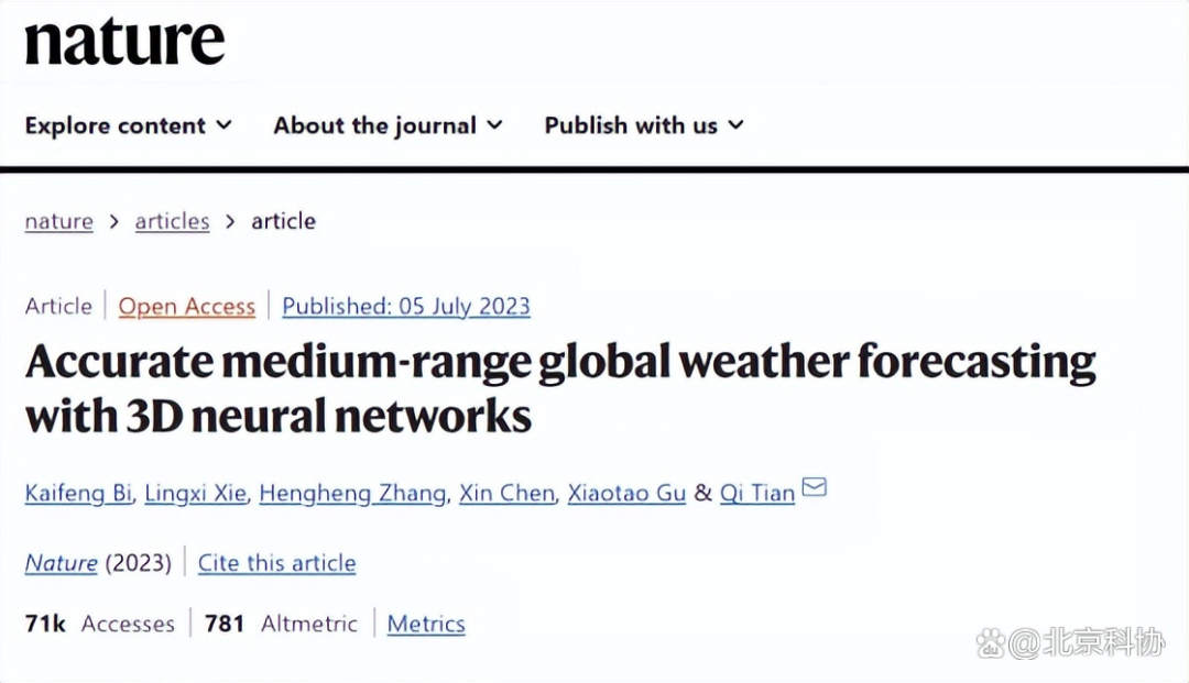 7月6日华为云盘古气象大模型登上《自然》杂志,图源:《自然》杂志官网