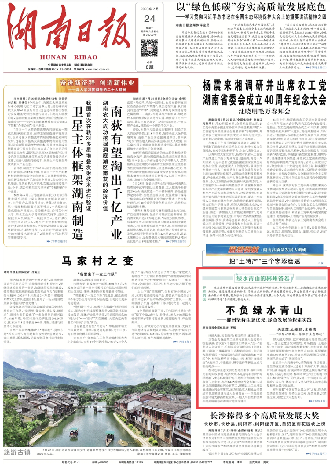 在习近平生态文明思想的指引下,郴州不断用新的实践表明,经济发展不是掠夺自然的“竭泽而渔”,生态环境保护也不是困守青山的“缘木求鱼”。上半年,郴州GDP增速位列全省第三、进出口总额增速位列全省第二、规模以上工业增加值增速位列全省第三、地方财政收入和社会消费品零售总额增速均进入全省前五……以高品质生态环境支撑高质量发展,一幅人与自然和谐共生的美丽画卷在湘南大地徐徐铺开。