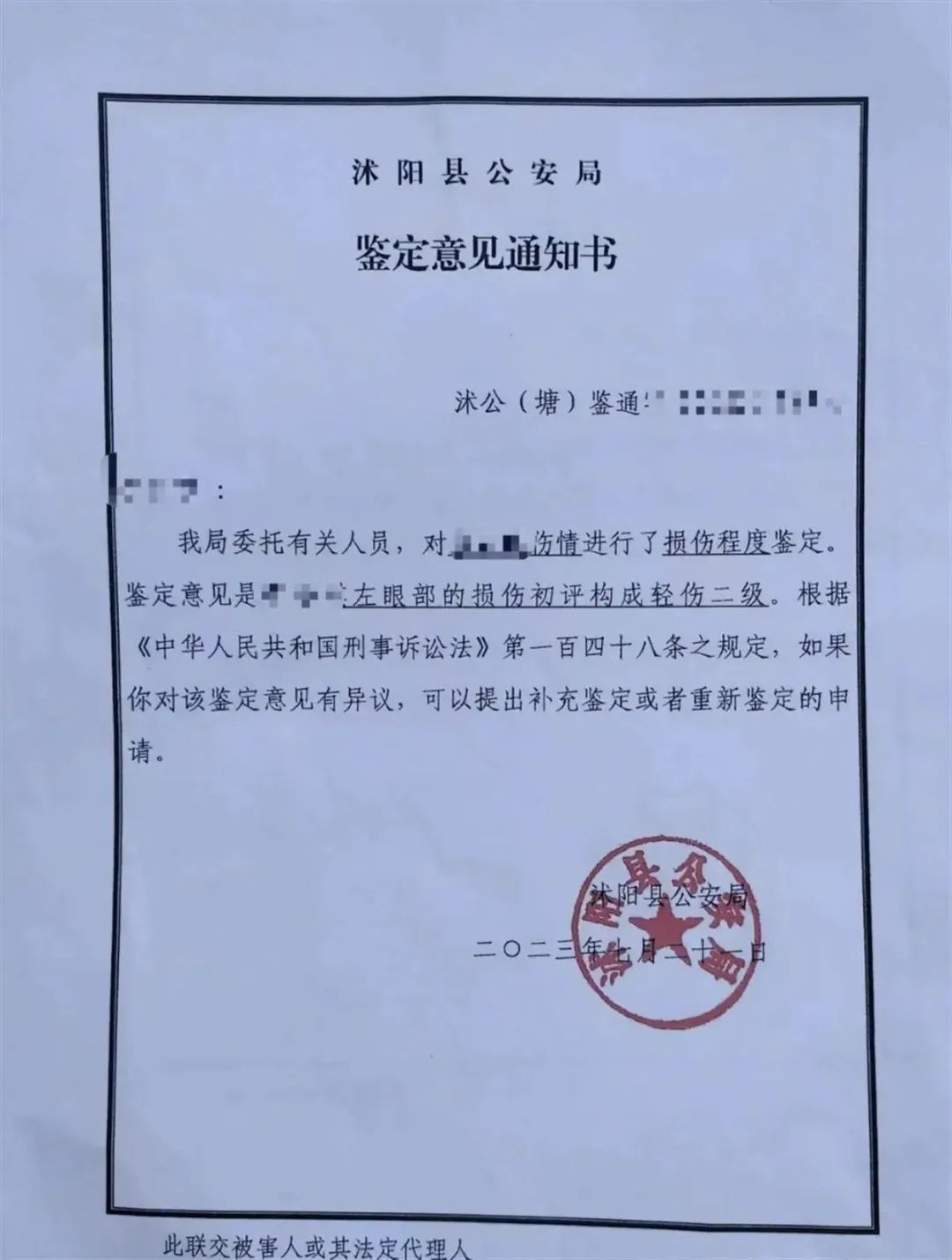 7月21日,沭阳县公安局向司女士出具了两份通知书,一份是不予立案通知书,一份是鉴定意见通知书。不予立案通知书中提到,该局经审查认为,行为人未达刑事责任年龄,根据《中华人民共和国刑事诉讼法》第一百一十二条之规定,决定不予立案。鉴定意见通知书则指出,已对安安的伤情进行了损伤程度鉴定。鉴定意见是安安左眼部的损伤初评构成轻伤二级。