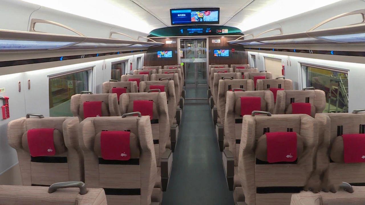 在列车的功能上,该动车组实现“5G+Wi-Fi”网络全覆盖,部分车厢内部设置智能交互终端,可提供高铁娱乐、无线投屏等服务,满足旅客在旅途中看电影、听音乐的娱乐需求。