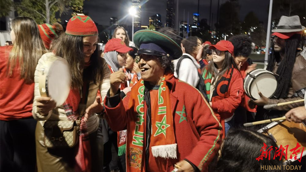 人群中,有两鬓花白的老人,有母亲和小孩,有壮年男性,也有妙龄女子……所有人笑容洋溢,伴随着轻快的音乐声,在冬季墨尔本清冷的寒风中舞蹈。人们高呼着:“我们的摩洛哥,我们的女孩。”