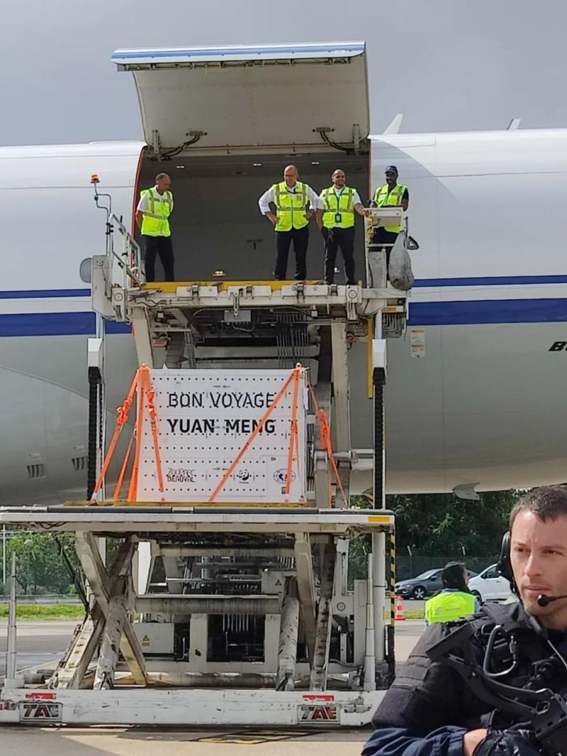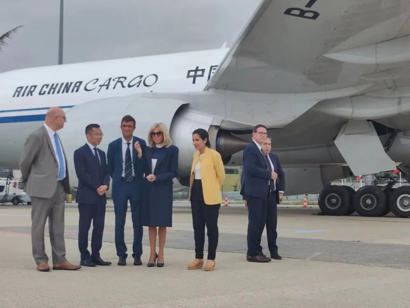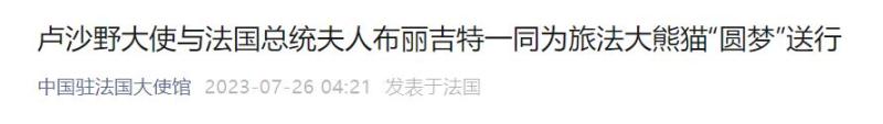 2023年7月25日,首只在法国出生的大熊猫“圆梦”自巴黎戴高乐机场搭乘中国国航货运包机前往成都大熊猫繁育研究基地,卢沙野大使与法国总统马克龙夫人布丽吉特、法国生态转型部负责生物多样性的国务秘书艾尔艾里、博瓦勒动物园园长德洛尔等一同前往机场送行。