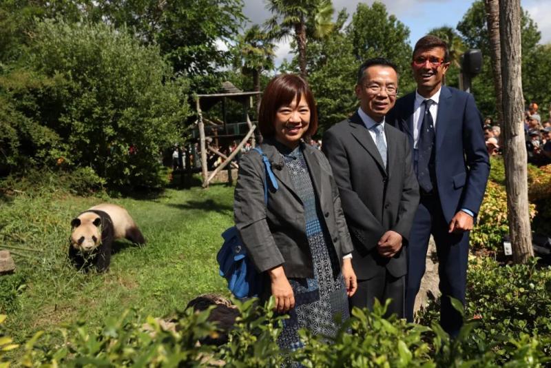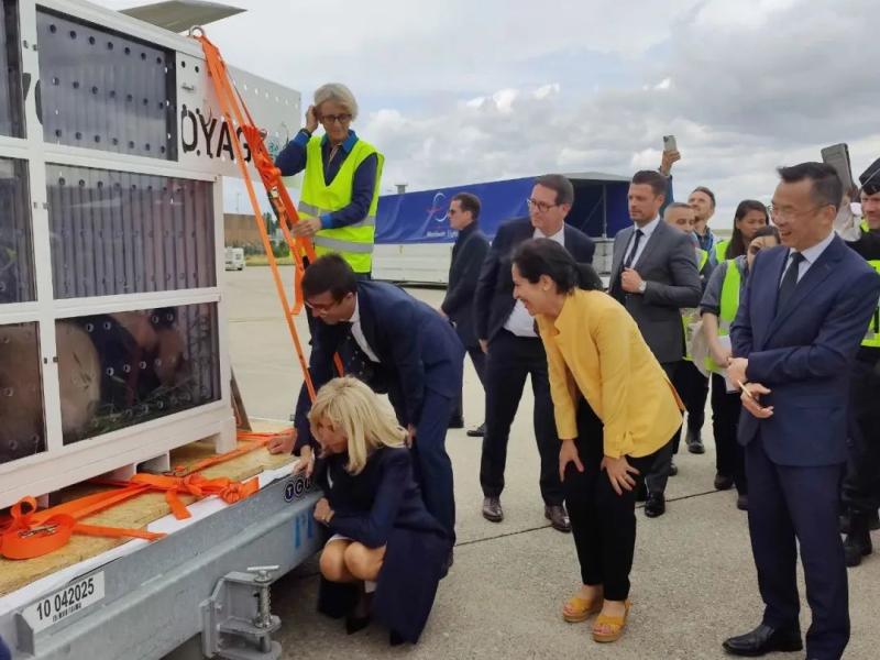 卢沙野大使与法国总统夫人布丽吉特一同为旅法大熊猫“圆梦”送行