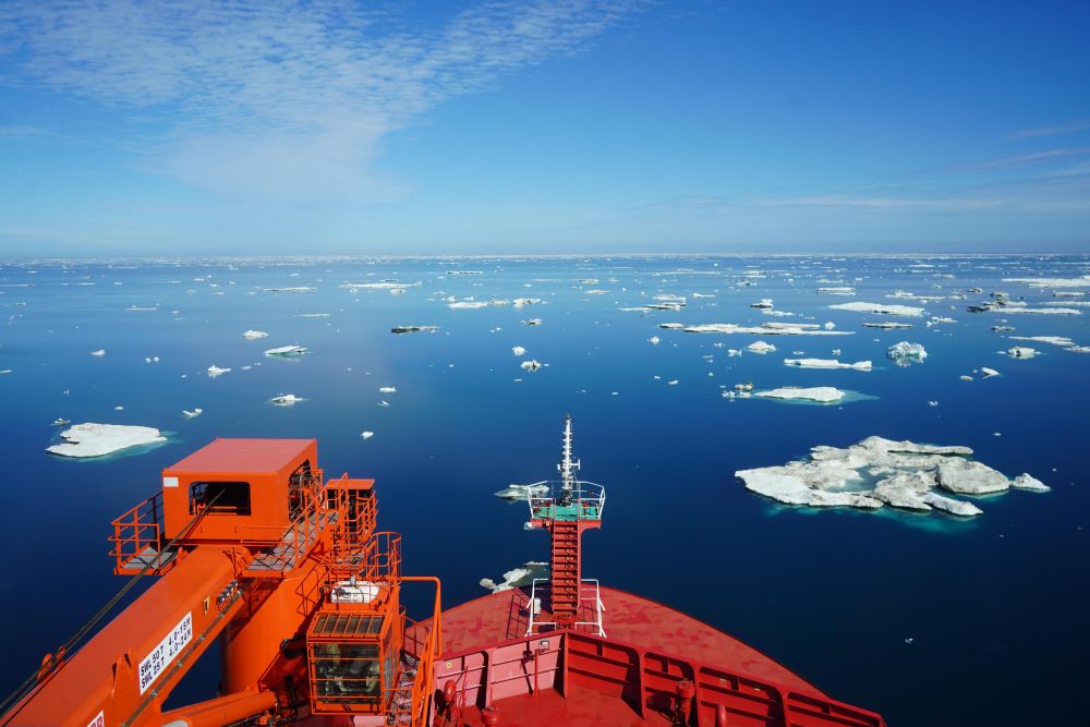 这是7月25日从“雪龙2”号极地科考破冰船驾驶台拍摄的景色。新华社记者 魏弘毅摄