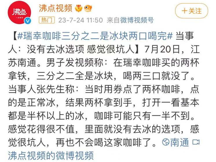 瑞幸咖啡对此次舆情的回复如下:所有饮品是严格按照流程制作的,可备注去冰,冰块多和无去冰选项的问题会记录反馈给相关部门。