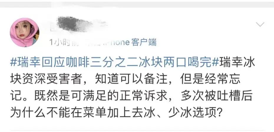 网友对此感到疑惑,既然如此,为什么不在点单页面中加入“去冰、少冰”的选项呢?
