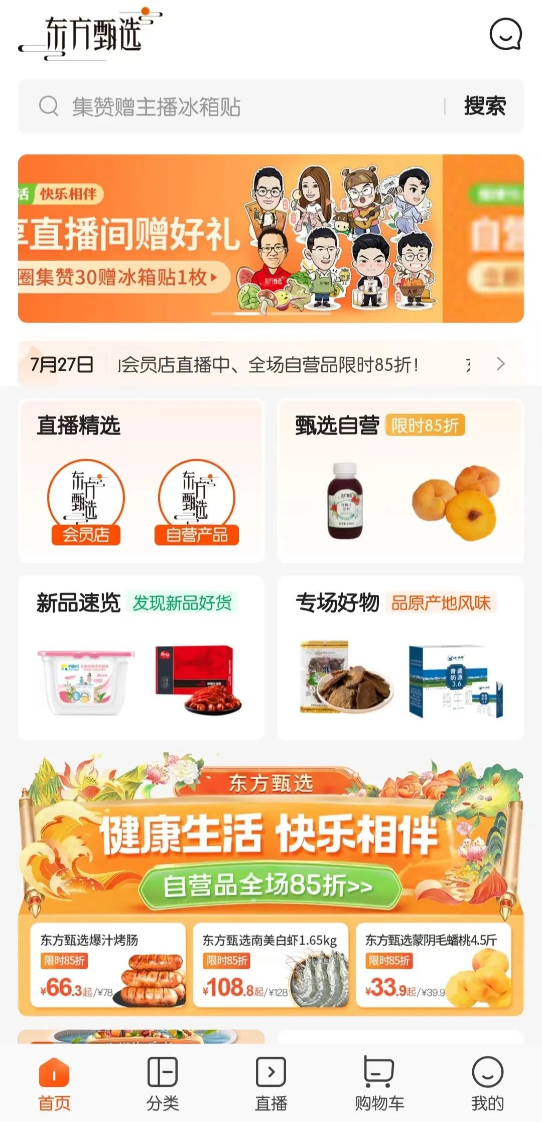 7月26日19时,东方甄选APP宣布自营产品全场85折促销。直播间同时在线人数超过2.6万人,自营产品销售破千万元,烤肠、白虾、鸡胸肉、吐司、披萨、蟠桃、鸡蛋等多款自营产品销售均破1万单。
