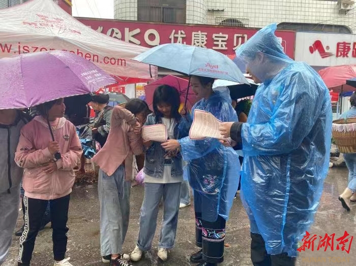 △李佳玉(右二)向花垣县群众宣讲政策。
