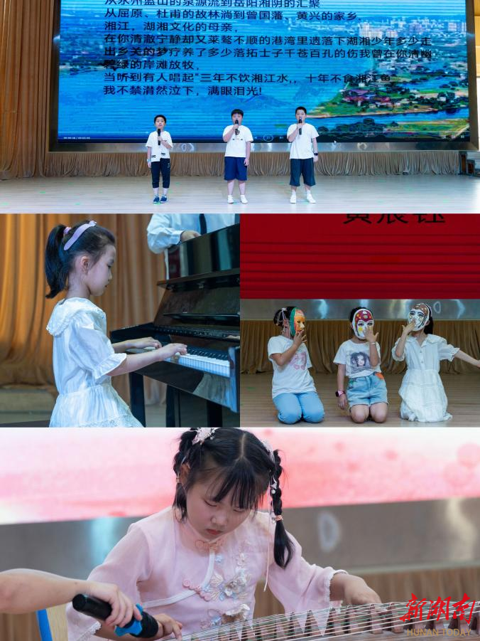 由学生和老师共同参与或由老师指导的节目表演环节,更是将节会气氛推到了最高潮。古色古色的舞蹈串烧,配上悠扬婉转的音乐,令人如痴如醉;怀古颂今的朗诵《湖湘印记》耐人寻味;黄宸钰同学带来的古筝弹奏《北京的金山上》令人感受到自信、豪迈、爽朗之感;田沐阳同学的《幻想曲》《芭蕾舞》《练习曲》钢琴连弹仰扬顿挫,动人心弦。传统文化特色的节目与现代潮流的融合更让本次节会增色不少,到精彩处,家长们或报掌声或欢呼,纷纷拿出手机,记录下这精彩一刻。
