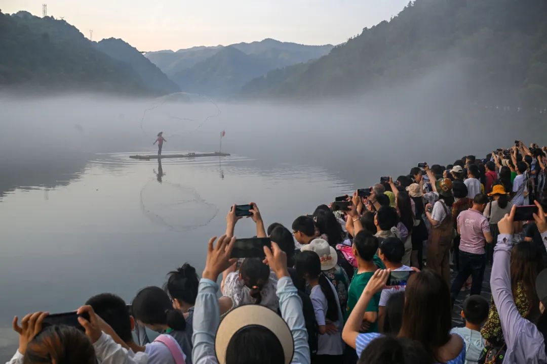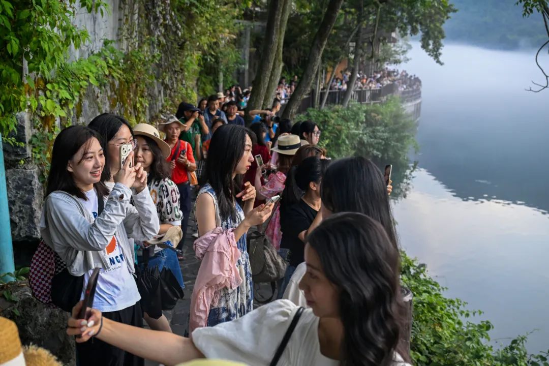 游客在资兴市东江湖旅游区游览观光。郭立亮 摄