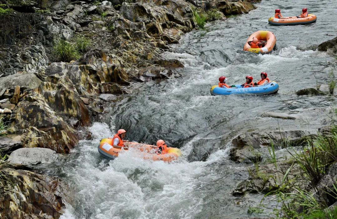 游客徜徉在植被葱郁、峰林绿染、空气清新的森林中,乐享绿色生态的快乐旅行时光。吴勇兵 摄