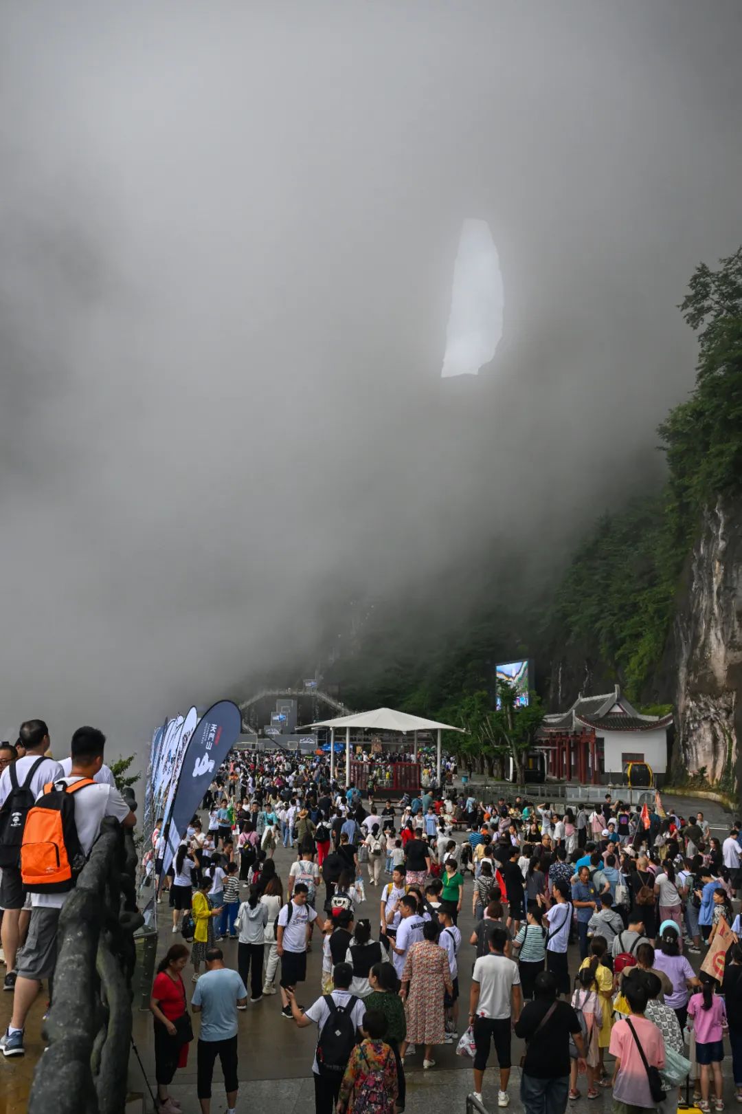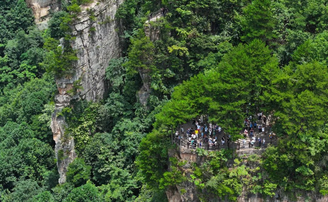 游客在张家界天门山游览观光,流连忘返。郭立亮 摄