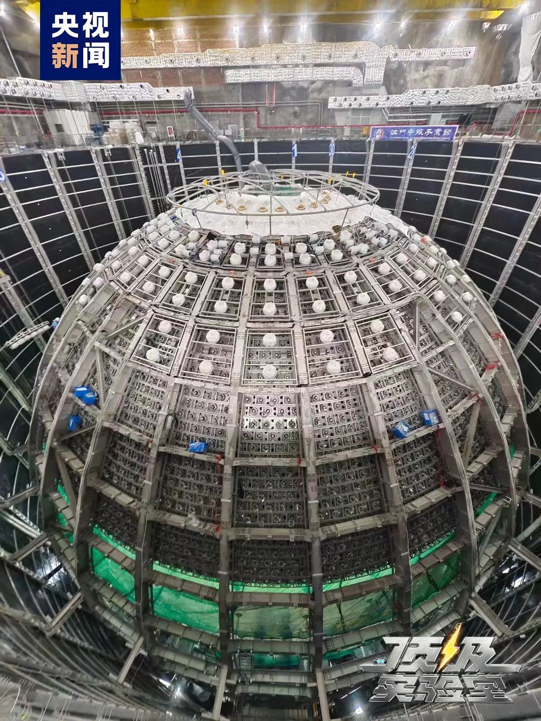 不同于一般的实验室,江门中微子实验装置的主体就像一只泡在冰水中的西瓜。