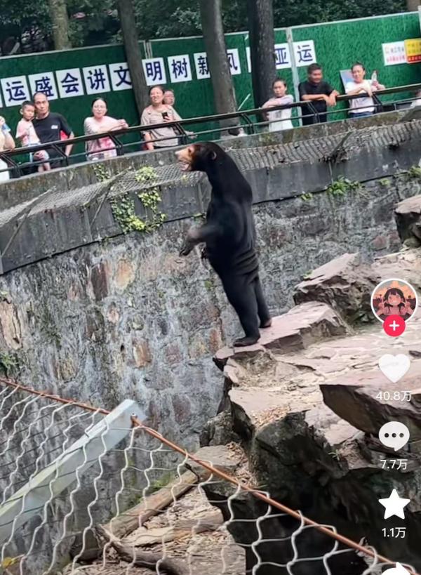 近日,有网友在抖音平台发布杭州动物园一只黑熊站立的视频,配文“成精了”。至7月31日,该视频获点赞40万,登上抖音热搜榜。有网友评论,这黑熊看着像是人扮的,戏称是“暑假工”。31日,杭州动物园工作人员告诉澎湃新闻(www.thepaper.cn),网友拍到的是马来熊,是真的熊。