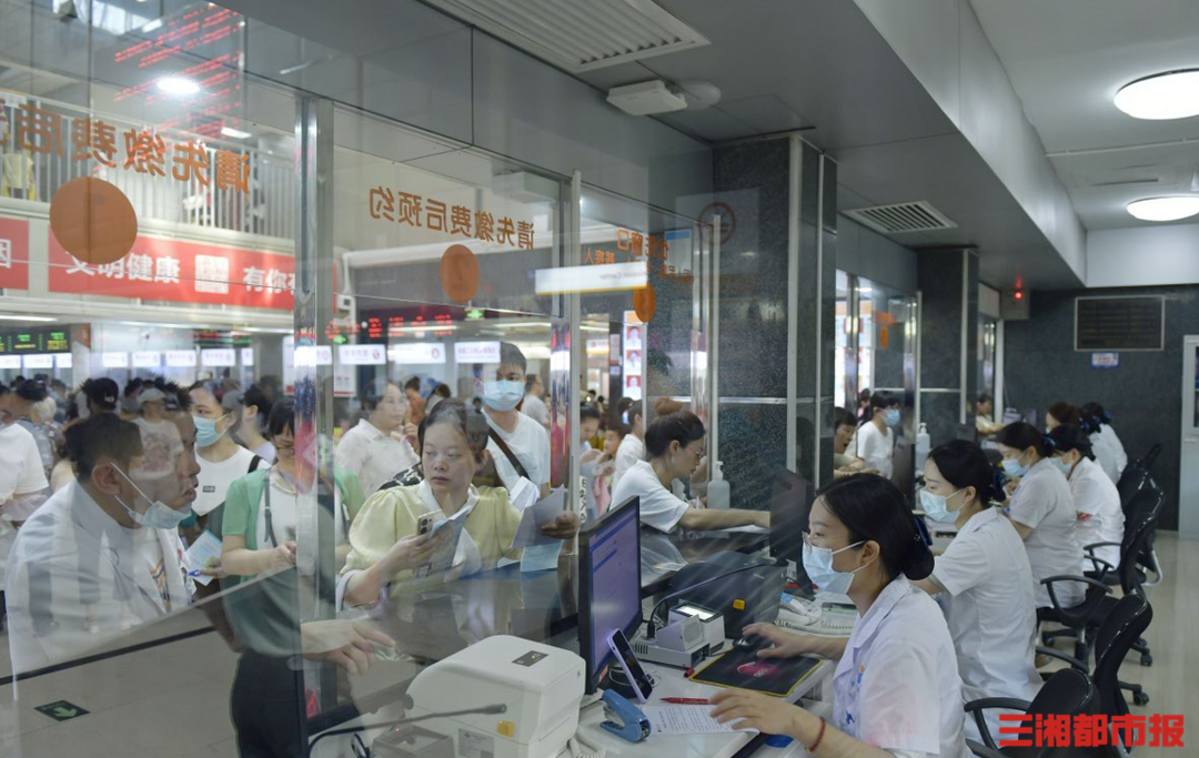 在湖南省儿童医院门诊大厅,行政职能部门工作人员穿上志愿者红马甲,协助开展导诊、分诊,加强巡视和维持就诊秩序。公共区域添置了空调、风扇,免费提供爱心药饮,做好相应防暑降温措施。各候诊区采用智能化电子叫号系统,临近中午,所有服务窗口仍在接待病患。除全天全时段开放门诊,开通午间和晚间延时门诊、检验检查全面提速外,医院对门诊区域进行科学布局、调整,提高家长和孩子们的就医体验。